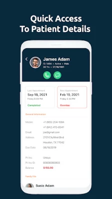 * Quick Access To Patient Details - look up important patient data on the fly before appointments like upcoming/past birthdays, a recap of their last visit, outstanding balances and more so you’re prepared to have more personalized conversations.