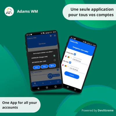 Créé pour les utilisateurs de services de paiements électroniques via code USSD (séquence de chiffres, d’étoile (*) et de dièse (#)), Adams WM est un assistant personnel qui vous permettra d’initier vos différentes transactions, chez plusieurs opérateurs/fournisseurs différents (Orange Money, Mtn Mobile Money, etc...), simplement et rapide en formatant et exécutant de façon automatique les codes USSD de vos transactions courantes :