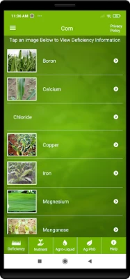 The Ag PhD Crop Nutrient Deficiencies app helps growers determine fertility issues in their fields. Users can search for deficiencies by nutrient type or browse photos of crops to find the image that most closely matches the fertility issue in their fields. Complete with photos and descriptions of numerous nutrient deficiencies in a wide variety of crops, this app gives users an additional tool to determine field problems and make fertility decisions.