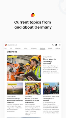 Immerse yourself in the world of deutschland.de – your source for news and insights from Germany. Our free app brings Germany directly to your mobile device – from the latest developments in politics, business, science and culture to tips for work, study and travel.