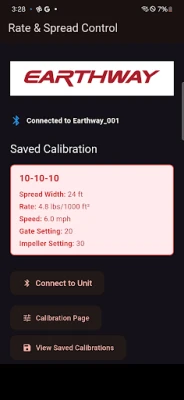 Control your EarthWay ride-on fertilizer spreader with precision and ease using the EarthWay SpreadControl app. Designed for professional lawn care and agricultural use, this app connects via Bluetooth Low Energy (BLE) to enable full control and calibration of your electric spreader — right from your mobile device.