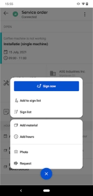 • The signed service order is ready for approval and the service activity can directly be invoiced if all service orders are signed.