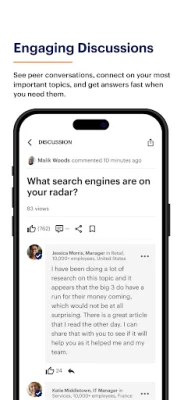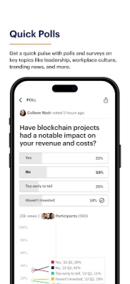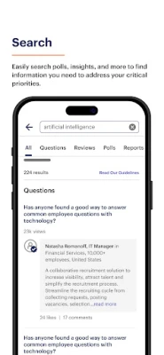 Users can: • Ask questions and polls to get real-time insights from peers; • Participate in Q&A, polls, and surveys to build profiles; • Learn from amazing leaders across the globe.
