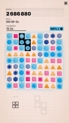 Rotate and drag the Tetromino to place it onto the puzzle grid. Watch the score rack up and the board adapt. An endless possibility space where you can test your mettle.