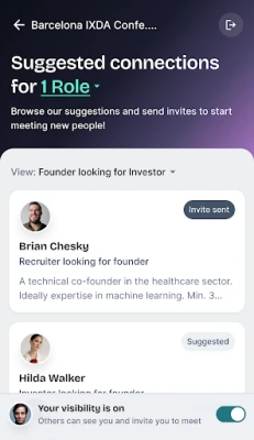 Met filters through event attendees to suggest the most relevant connections based on your goals. Whether you're looking for business partners, clients, investors, or peers, Met makes networking more efficient by introducing you to the right people—live, in-person, at the event or spontaneously at the venues you work from.