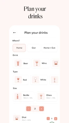 • Comprehensive calendar – allocate your drinks for the week ahead with our custom-built standard drinks’ calculator. Keep an accurate account of your progress by updating your actual drinks consumed, along with spend and calories. Conveniently repeat events and journal your moods to take note of your triggers and celebrate your wins.
