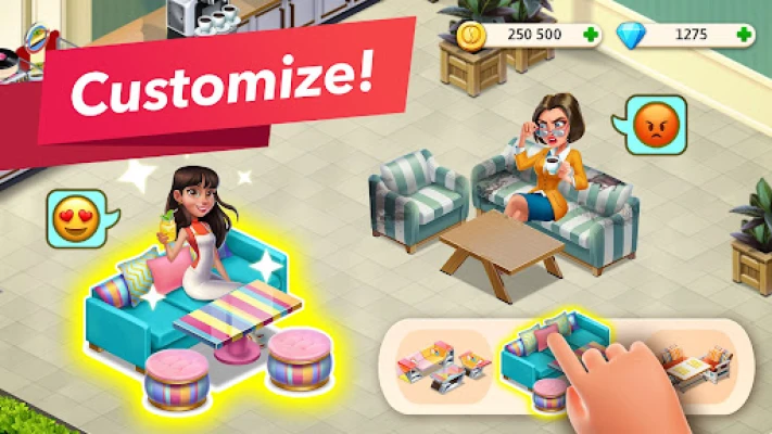 • In this restaurant game, there are no limits to your creativity. Choose from tons of decor styles, position furniture, and make that humble little coffee shop your own.