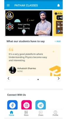 PATHAK CLASSES is a platform for every science students to learn in an interactive manner. The app offers comprehensive courses for students of All Boards 11th, 12th & B.Sc. Classes with LIVE & Recorded Lectures, Doubt-Solving, Test Series, Study Material & more!