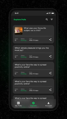 With Voliz, you can easily design and launch polls that are ideal for any occasion, from casual group discussions to professional surveys. No technical skills required! The intuitive interface allows you to create questions and answers in just a few taps. Whether you’re looking to make a decision with your team, engage with your audience, or simply ask a fun question, Voliz offers a straightforward platform to do it all.