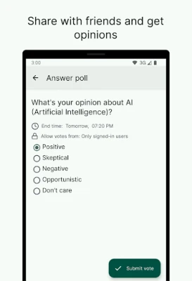 • Create anonymous poll and allow everyone to vote, even without sign-in