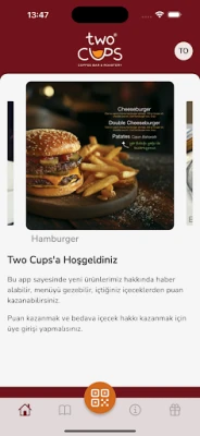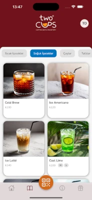 Two Cups Coffee Resmi Uygulaması. Bu uygulama sayesinde Menü ve fiyatlarımızı görebilir, içtiğiniz kahveler ile ödül kahveler kazanabilirsiniz.